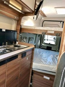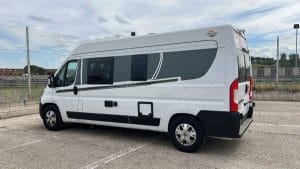 La Camper Carado Vlow 601 dispone de todas las comodidades para que puedan viajar, comer y dormir 4 personas. Dispone de un comedor, Baño con ducha, frigorífico con congelador, cocina de 2 fuegos, agua caliente y calefacción estacionaria.